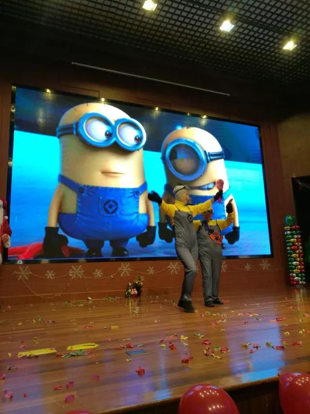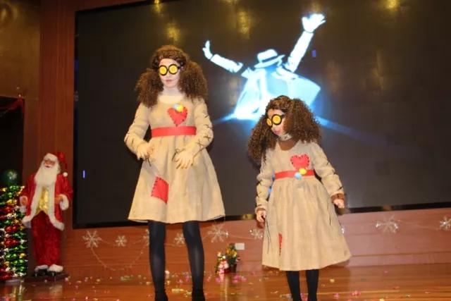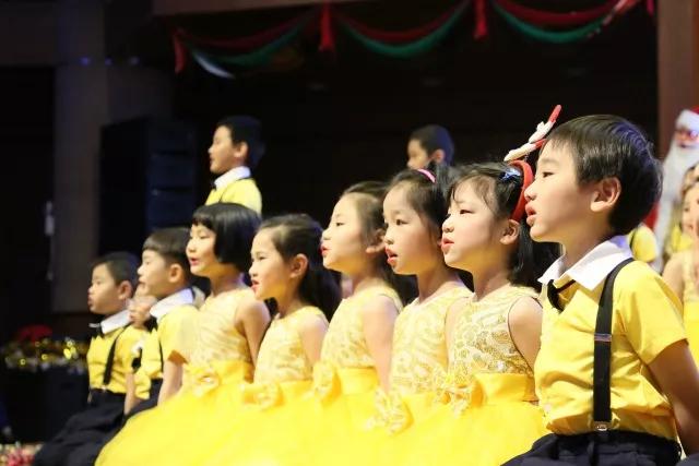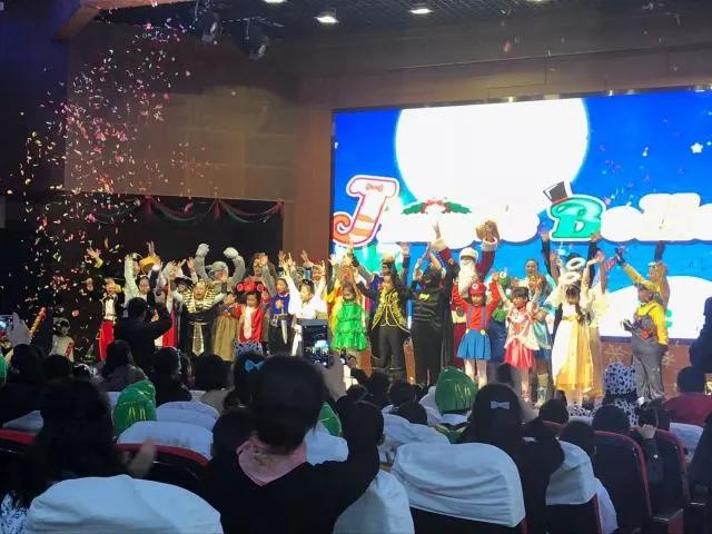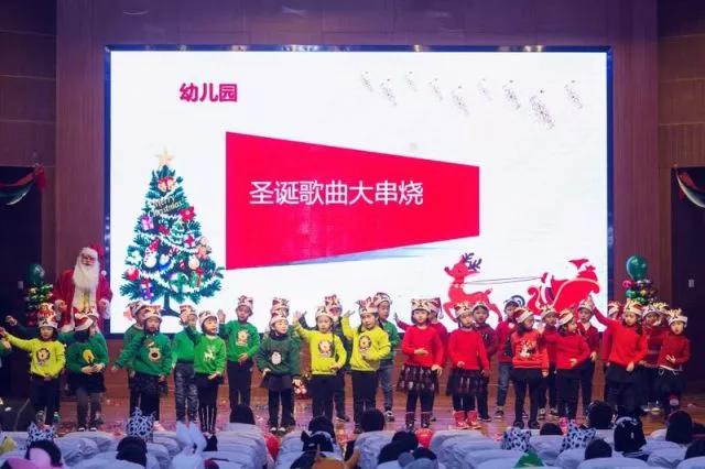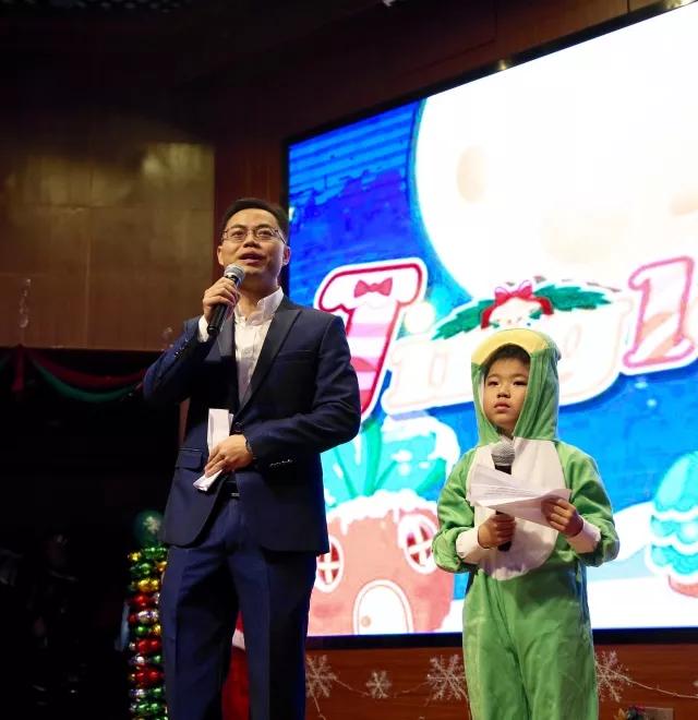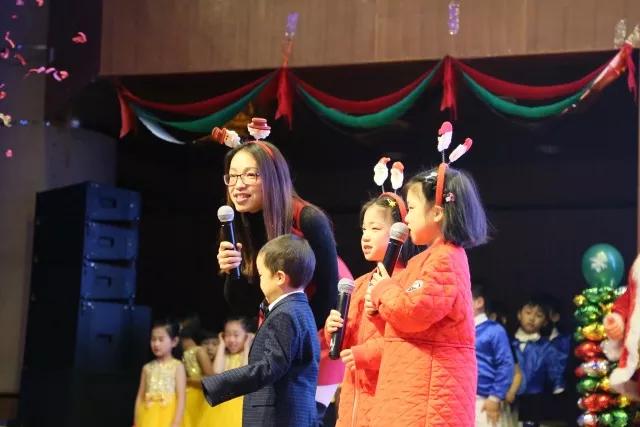 09:00 圣诞钟声敲响, 一年级家长Echo 携双胞胎女儿及在金苹果幼儿园读书的儿子走上舞台,在三个萌娃稚嫩的宣布下, Christmas party begins!
