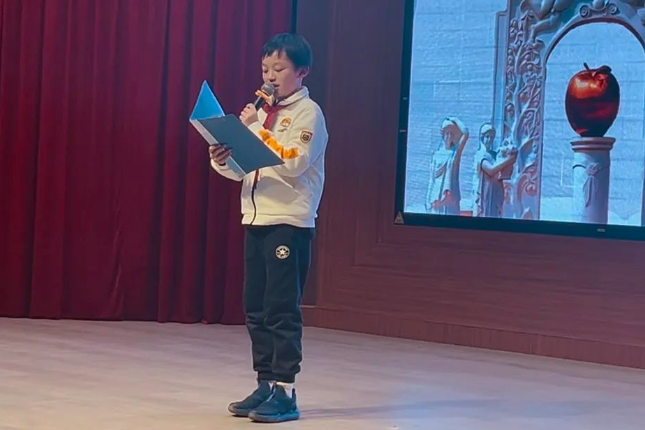 四(7)班的 William 代表全班同学,为 “小果果大讲坛” 起了非常响亮的英文名‘Little Apples, Big World’。