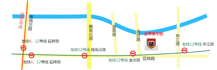 学校地址:浦东新区巨峰路1555号,毗邻上海自由贸易区,地理位置优越。交通四通八达,地铁 12号线、地铁6号线就在学校大门口,还有多条公交路线直达人民广场、陆家嘴金融贸易区等闹市,交通极其便捷,给全校师生的日常工作生活都带来极大的便利。