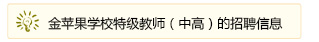 当前,上海金苹果学校正处于做精做强、朝着创建上海市和全国一流民办学校的方向努力迈进的重要阶段,立志为国家培养更多的德智体美劳全面发展的复合型人才,为科教兴国做贡献。为了使学校的教育教学工作跃上新台阶,急需一批热爱教育事业、在教育园地辛勤耕耘多年,具有极其丰富的教育教学实践经验、能够继续立足学校教学工作第一线、德才兼备的资深名师加盟金苹果学校教师队伍。校方将为您提供优厚薪资福利待遇;优雅的办公和教育教学环境;先进的教育教学设施;工作期间的安全、医疗、交通、食宿以及各方面的综合利益保障。学校还将根据您的实际才华与贡献,提供晋升、专业培训、游学交流与国内外教育教学考察、讲学等便利。