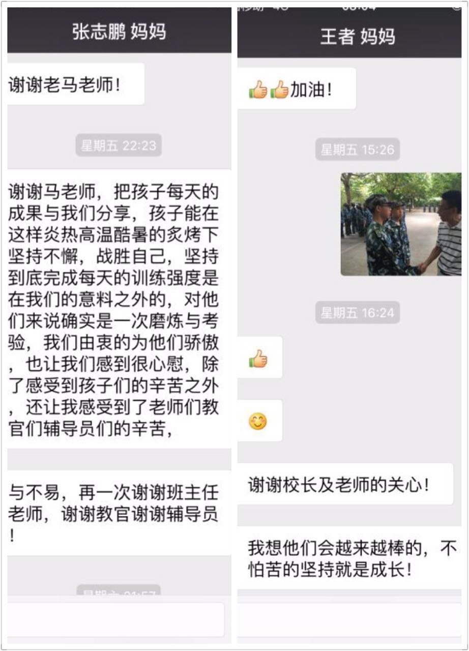 通过七天的艰苦军训,同学们收益良多。家长也和军训基地连成一片,反响剧烈,很多家长忍不住发出了内心的感触和激动之情。