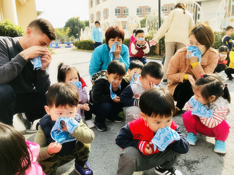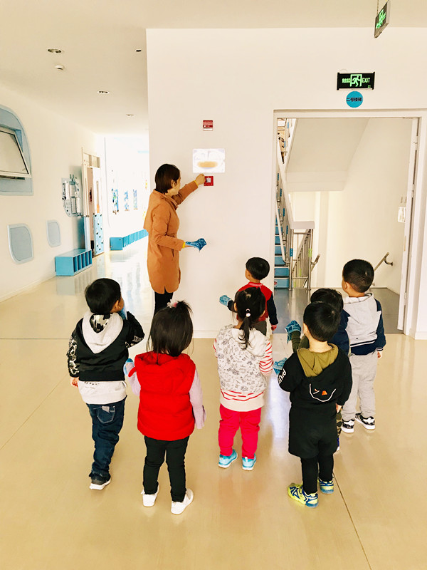 11月9日的上午10点我们开展了一次消防紧急疏散演练。当“警报”声响起时,我们小朋友们一个接一个迅速的用湿毛巾捂住口鼻,弯着腰,手扶楼梯的栏杆,不吵不闹,紧张而有序的按逃生路线撤离班级,到达安全的区域。