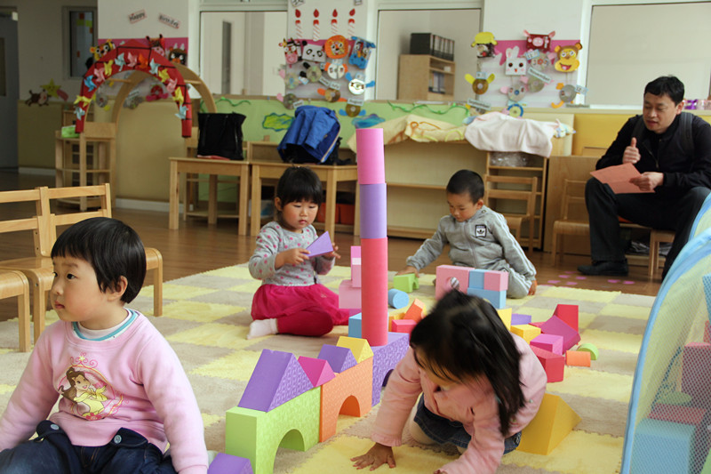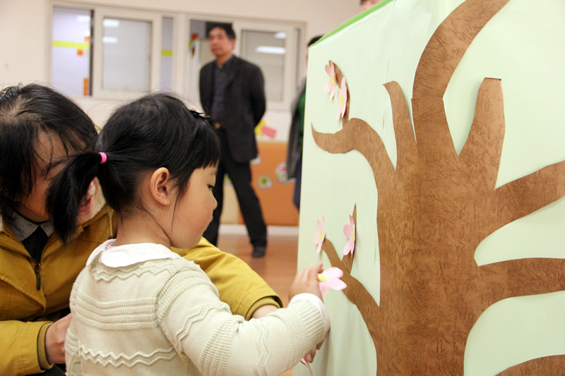 短短的半日活动,充分的呈现了各式各样感知和感官活动,爸爸妈妈带着宝贝们,快来看看有哪些好玩的呢?切切乐、捡蛋蛋、爬爬乐、桃花贴贴、扭扭草裙舞、小小建筑师……户外运动场上摆放着各种小车等运动器材和大型器械,更别错过外教老师们精采的英语课程学习和游戏体验。在此过程中,孩子们快乐低活动和游戏,家长感受着金苹果幼儿园的中外教师们如何与孩子沟通和互动、如何引导孩子进入学习状态、如何带领孩子与同伴们展开各类运动、律动和游戏……。