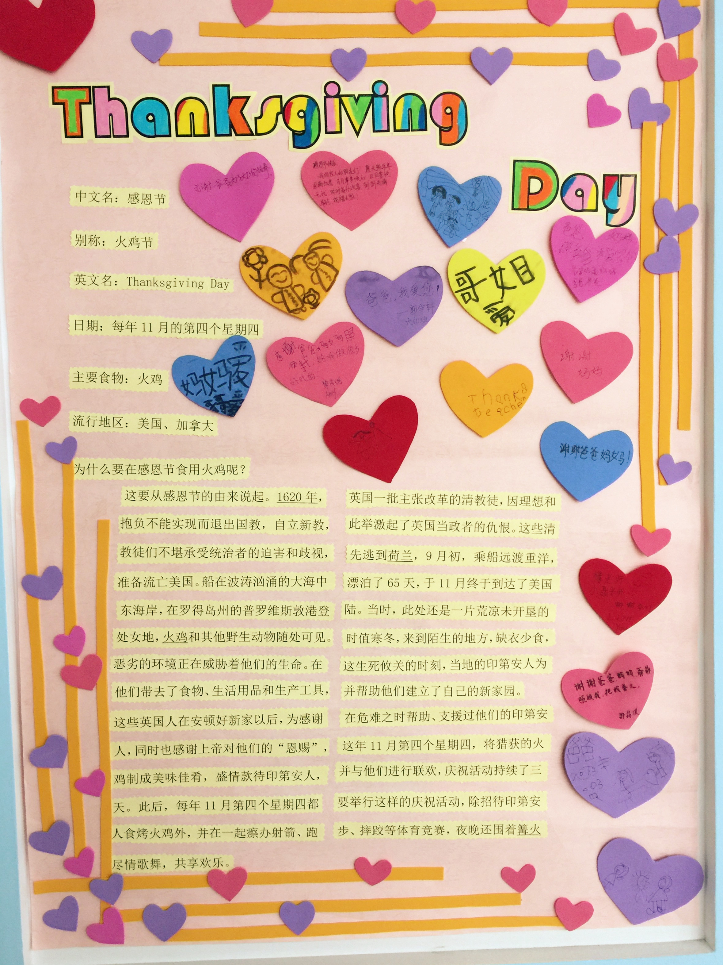 每年11月份第四个星期四是感恩节,是一个大胆表达和接受真诚谢意的日子。为了弘扬中华民族的传统感恩教诲“受人滴水之恩,当以涌泉相报”、“谁言寸草心,报得三春晖”等美德,我们开展了认知感恩节的学习活动,在活动中我们了解了什么是感恩节、感恩节的由来等。