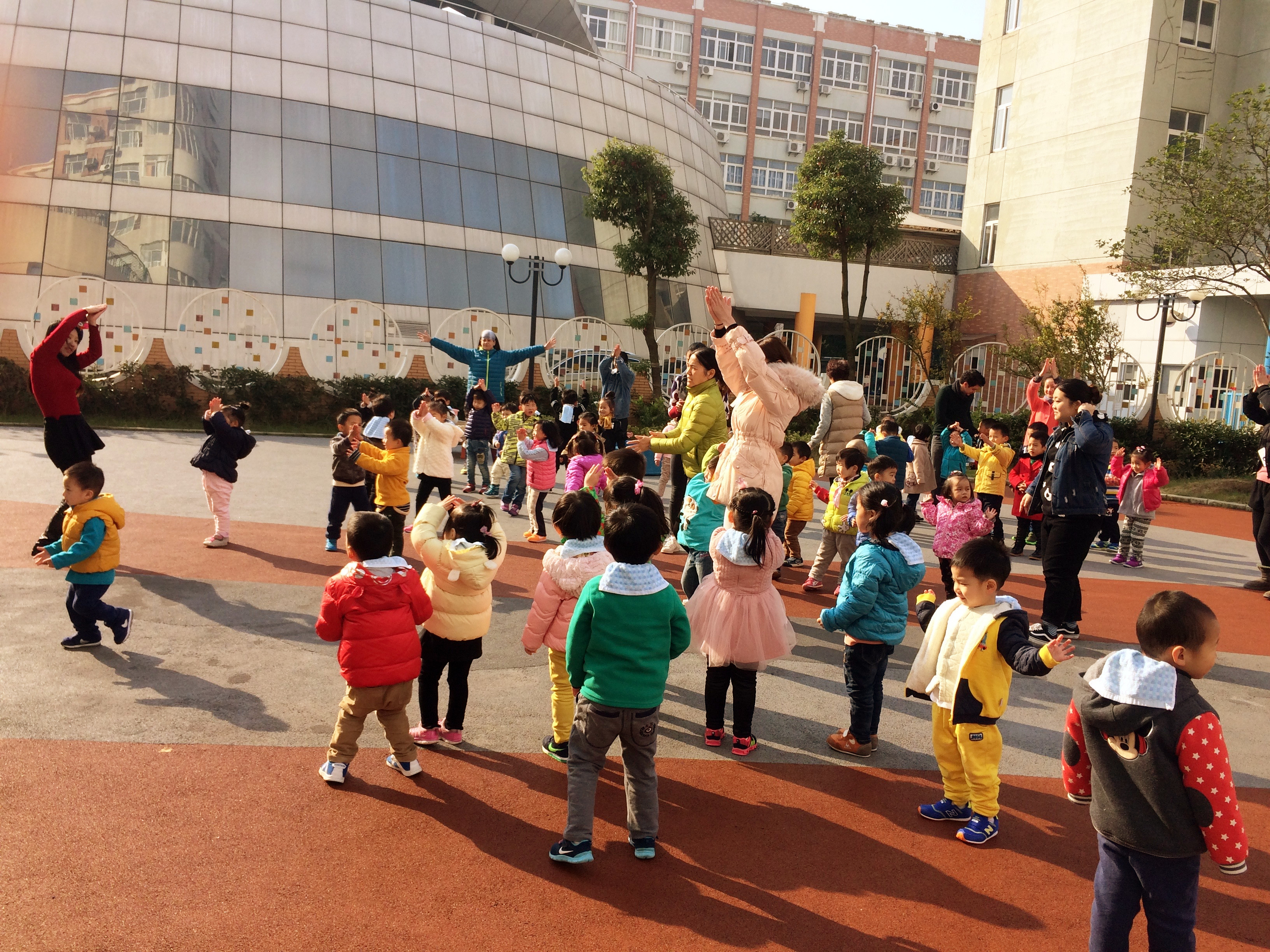 看,我们跟着老师一起跳火鸡舞,虽然天气有点冷,但是我们的舞蹈依然跳得很有激情。能够在这么冷的天气里坚持跳完火鸡舞,是不是值得表扬一下呢!