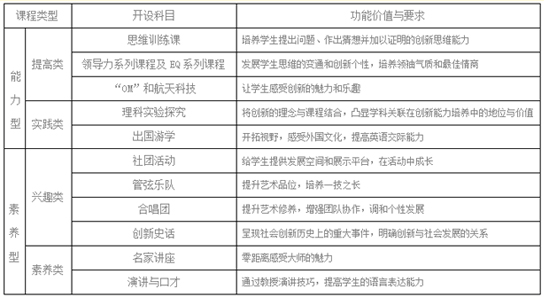 通过选修课、拓展课、创新素养课程及剑桥课程,全方位渗透对学生的能力培养。