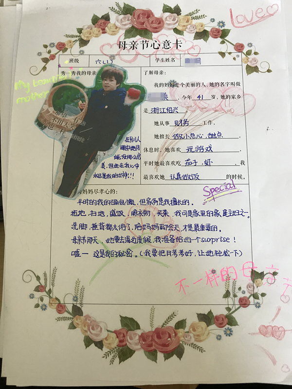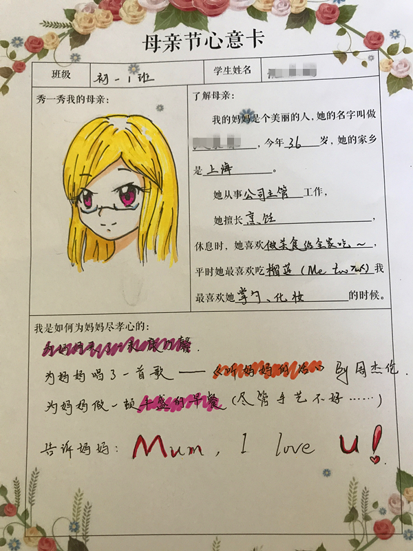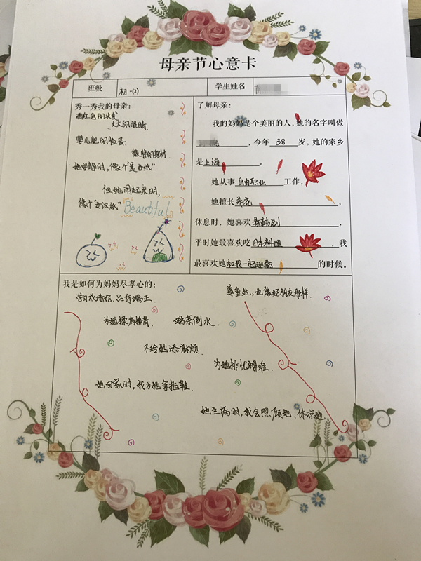 在母亲节来临之际,中学部给每位同学都下达了一个特殊的任务!