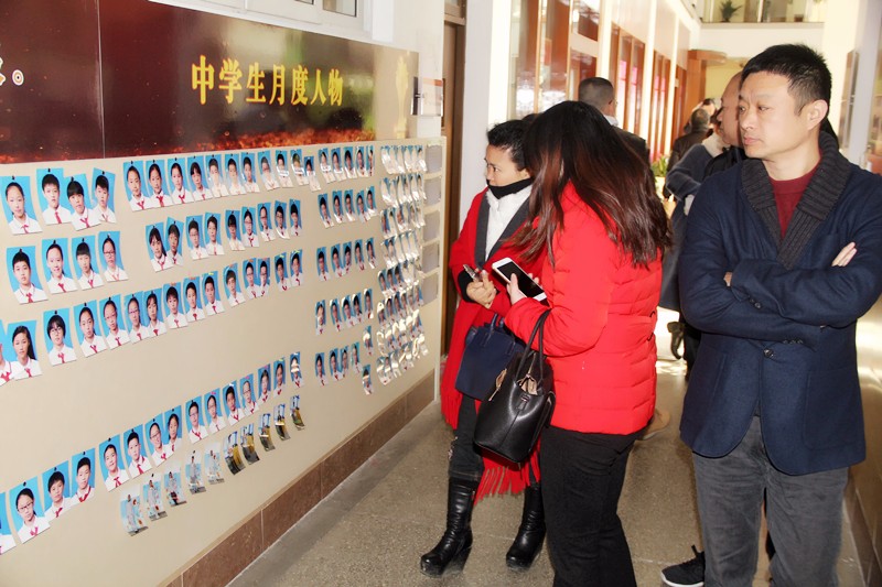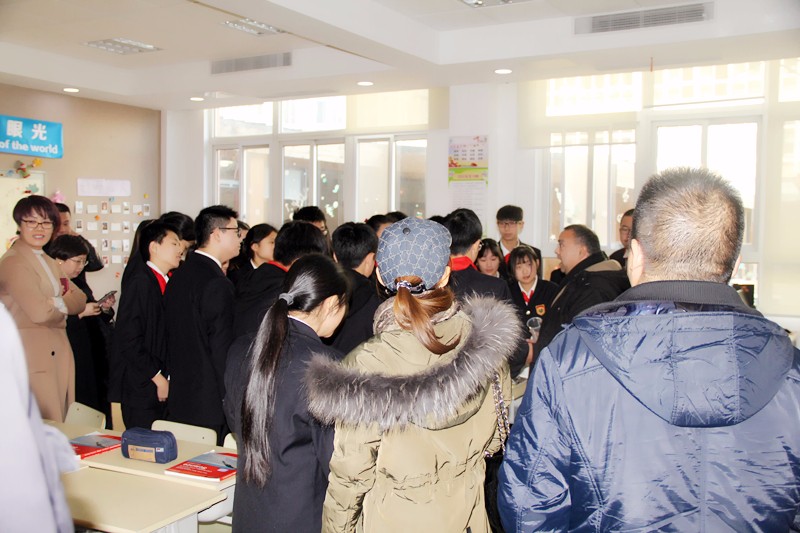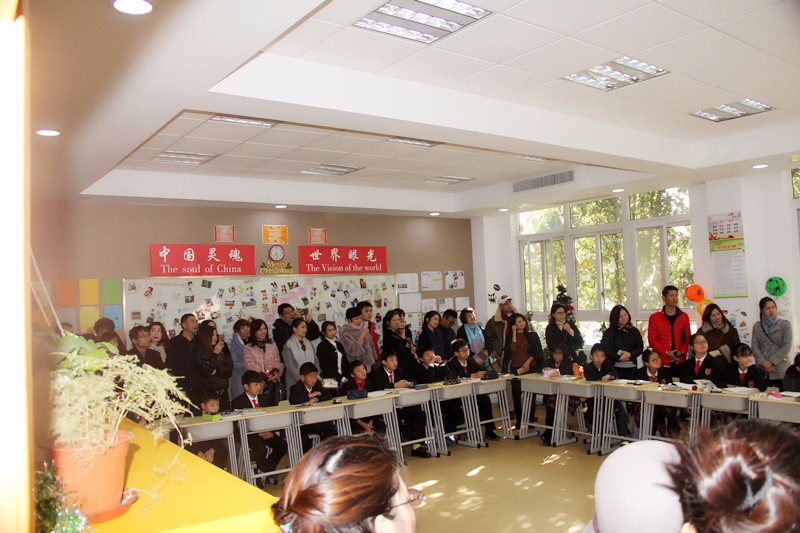 听完报告,家长们来到预备年级,观摩预备年级的教学。