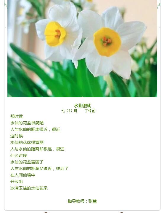 “水仙花节”校园征文比赛在这草长莺飞、桃红柳绿的早春二月如火如荼地进行着。