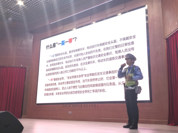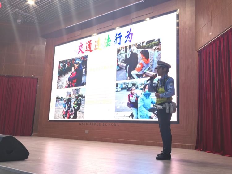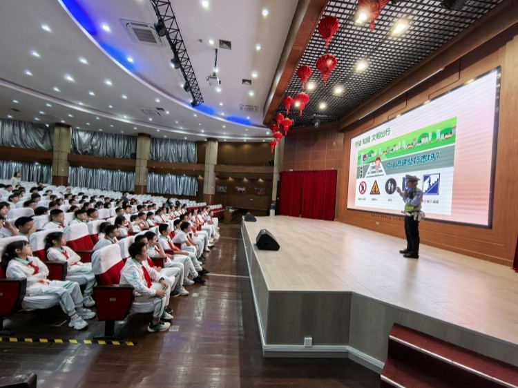 警察叔叔就交通信号、交通违法、交通安全等知识于同学们开展交流。
