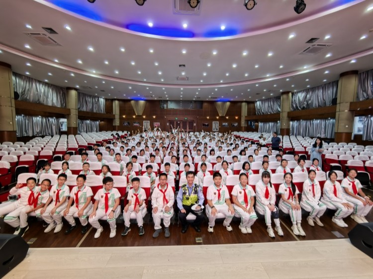 9月3日,浦东交警三大队警官走进我校,为预备年级的同学们送来了开学安全第一课。