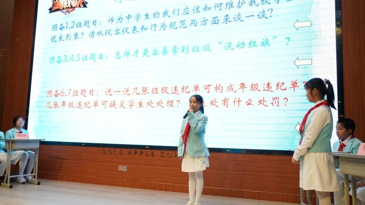 在行规知识问答环节,选手们展现出了扎实的知识储备和快速反应能力。他们不仅对学校的各项行为规范了如指掌,还能灵活运用所学知识,解决实际问题。这一环节不仅考验了选手们的记忆力,更检验了他们对行规的深入理解和应用能力。