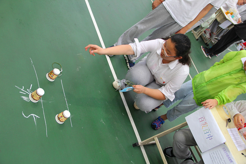 在游园区,同学们历经千辛万苦,集齐卡片,换得一次宝贵的抽奖机会。虽然奖品可能是一本书、一个棒棒糖,也有可能是“请捐款一元”,但是这些丝毫不影响他们挑战成功的喜悦心情。