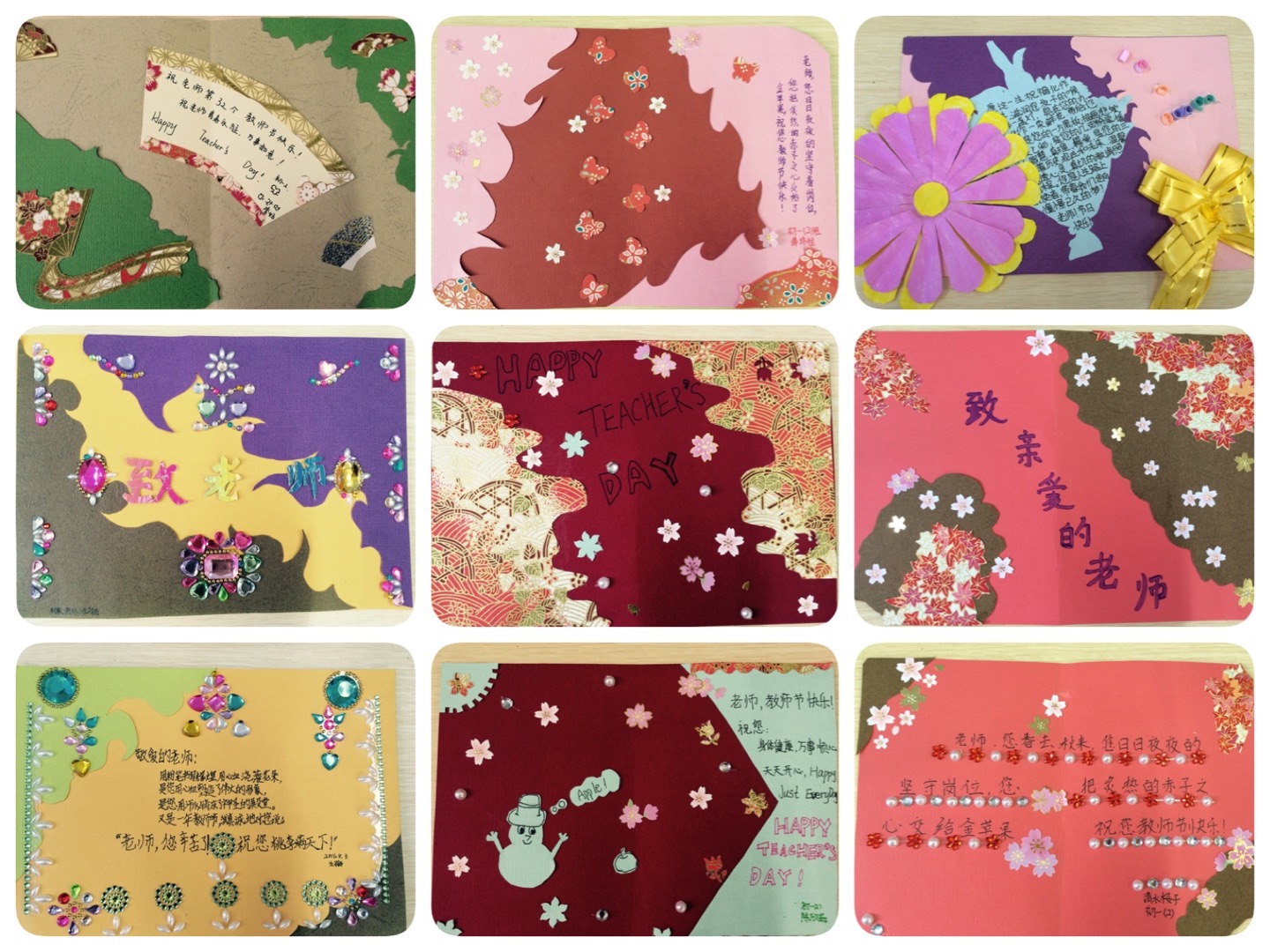每一张卡片都匠心独运、设计精良,一句句真心的话语饱含着学生们对老师们的感恩之情,字里行间满溢着爱与心意。当老师们收到卡片时,脸上不禁漾起了温暖的笑容,惊喜于卡片的制作精美,更感动于孩子们真切的留言。