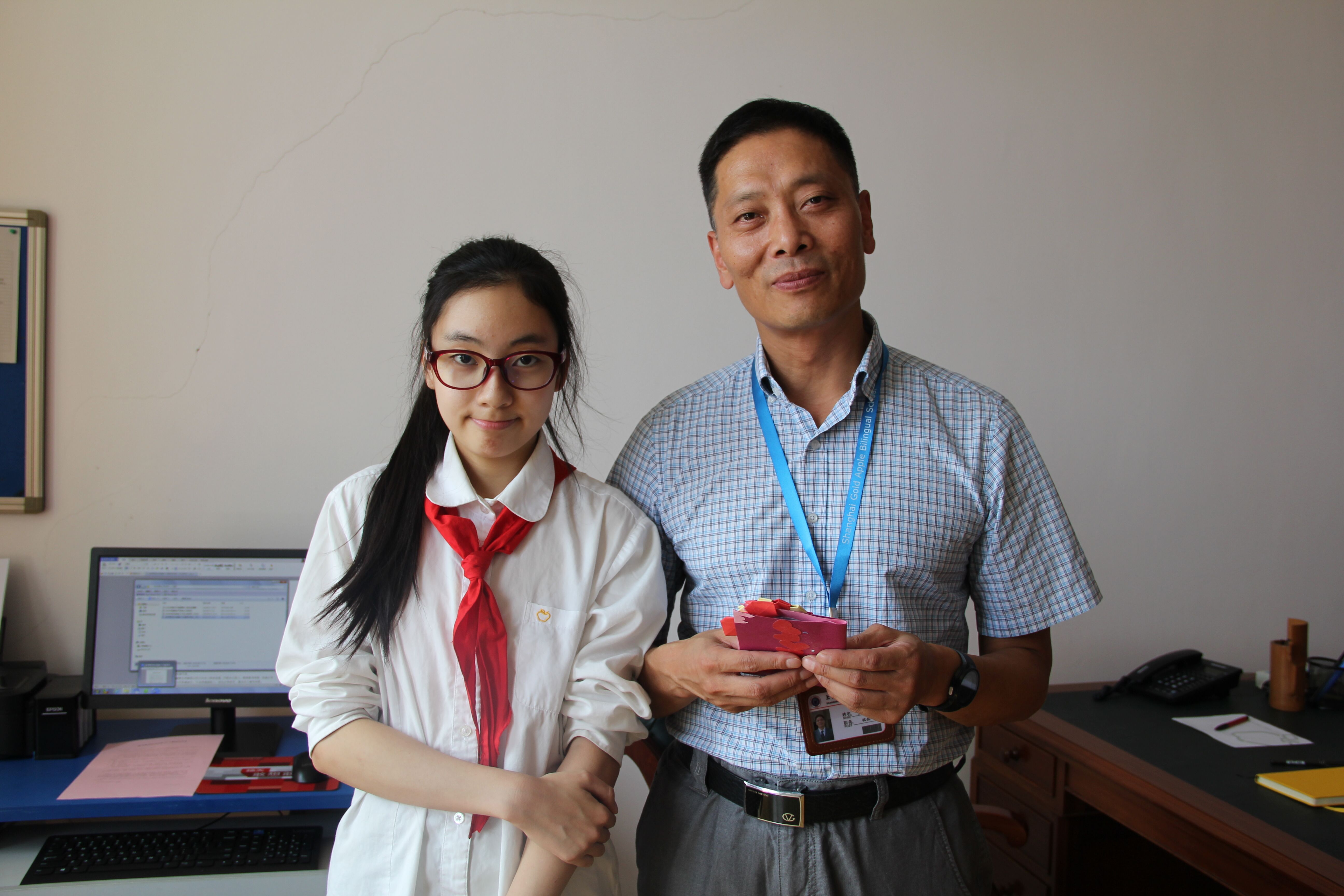 在第32个教师节来临之前,金苹果中学部的孩子们已经为在校的老师们献上了节日的惊喜——海报、黑板报、贺卡和绿色植物轮番上阵。