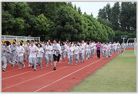 在周一至周五的清晨,在环境优雅的金苹果学校操场上,从小学到高中的全体教师与学生,组成了近三千人的晨跑队伍。大家迎着初升的太阳,成群结队,跑步健身。金苹果校服与鲜艳的红领巾随着晨跑队伍移动,形成了一道靓丽的风景线。如今,作为学校的传统健身活动,晨跑,正以不断递增的师生人员、日益强健的学生体魄和良好正规的校园风范,成为持续塑造时尚阳光校园、阳光教师、阳光学生和阳光校园文化的“金苹果”形象“大使”!晨跑,正以日益明显的正效应,在增强学生体能、扩充个人肺活量、有效提高运动体力耐力、持久锻炼个人坚强意志与毅力等方面,发挥着独到的功能。与此同时,集体主义观念,年级与班级集体荣誉感, 以及师生之间、同学之间的情感交流、奋发互动,以及金苹果学校无可替代的强大凝聚力与向心力,也在这项全员参与的体育健身活动中,尽然显现。“你跑步了吗?”--金苹果学校早间的时尚话题。
