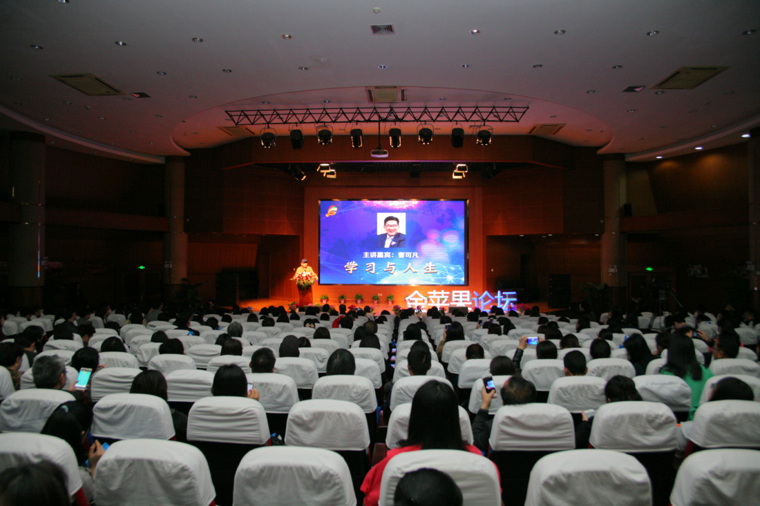 4月6日下午,在金苹果双语学校,上海市教育学会金苹果论坛上,沪上著名主持人曹可凡与来自全市的500多位中小学校长、优秀教师及家长聊起了学习和人生,他分享了个人的成长轨迹和享受学习的生活方式:在一个瞬息万变的社会里,家庭教育、学校教育、社会教育三者缺一不可,需要保持终身学习的能力。