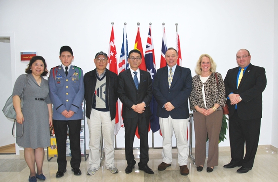 江国法校长、张道华教授和卡森隆军事中学校长皮尔森一行合影