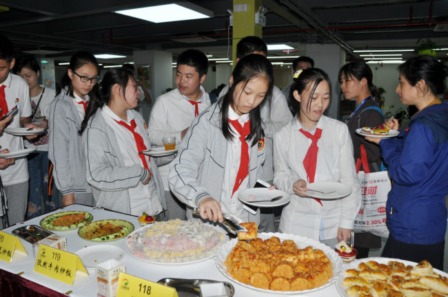 邀请到场的家长、老师、学生开始围绕精心准备的美食品尝。