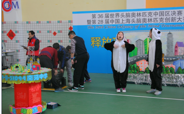 根据OM比赛的赛制规定,每支参赛队须参加长期题和即兴题的角逐。今年的OM赛题有6道,它们是《经历技术困境》、《无声电影》、《古典…潘多拉魔盒》、《失控的“火车”》、《释放玻璃球的结构》和《古怪的天气预报》。这些长期题,在赛前六个月公布,让七名队员组成一支参赛队,在教练的指导下解题。比赛时要用艺术表演的手法体现长期题的解题过程,要给解题方案确定一个主题,并进行幽默的、创造性的艺术表演,并要求成本控制在145美元以内,展示时间不超过8分钟。