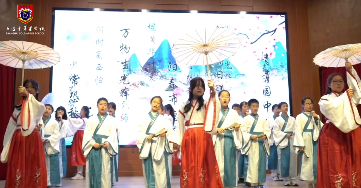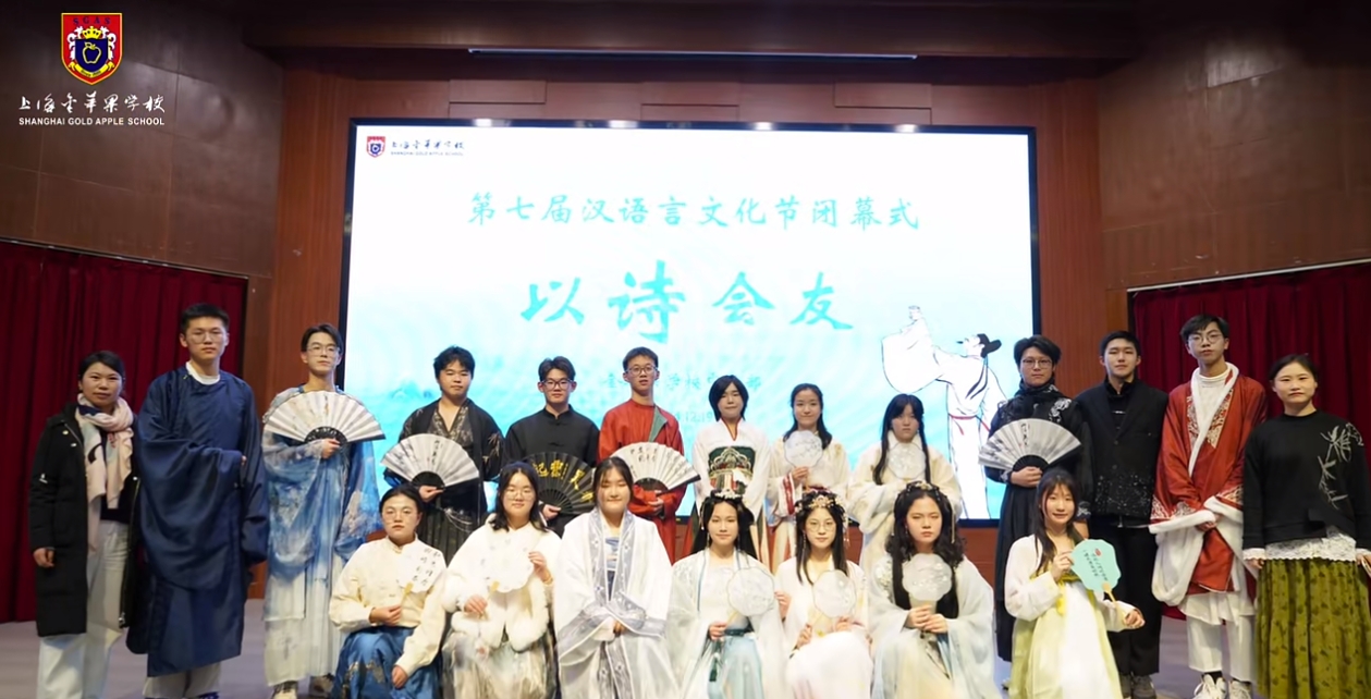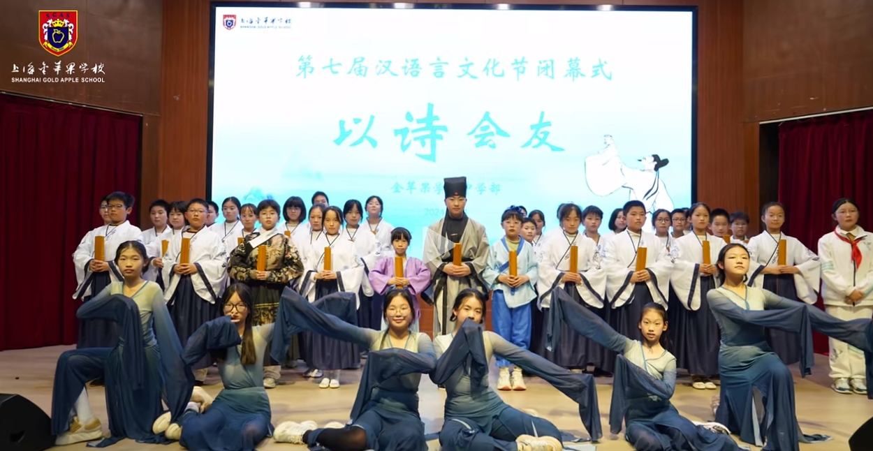 “以诗会友”2024汉语言文化节在上海民办金苹果学校会议中心成功举办,中学部于2024年12月20日下午举办了主题为“以诗会友”的汉语言文化节。本次活动旨在弘扬中华优秀传统文化,增强学生对汉语文学的兴趣和热爱,同时也为学生们提供一个展示才华、交流学习的平台。诗词朗诵,传递经典活动在热烈的掌声中拉开帷幕,由校朗诵社团带来的各项节目激情澎湃,瞬间点燃了现场气氛。随后,各班级代表依次登台,朗诵了多首经典诗词,如《论语》《鲁迅》等节目。同学们用真挚的情感和动人的声音,再现了古代文人墨客的心境与情怀。创意表演,展现风采除了传统的诗词朗诵,本次文化节还设置了丰富多彩的创意表演环节。