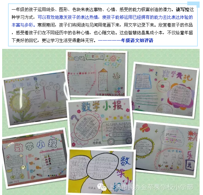 金苹果小学部学生寒假作业展示-----Winter Vacation Homework Show