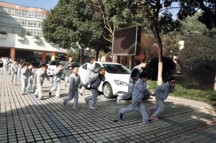 上午9:35分,火险警报声大作!老师们按学校应急方案迅速找到自己的岗位,组织学生安全、有序撤离。