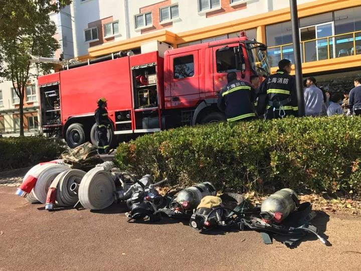 9:40分,在年级组长的组织下清点本年级师生人数,确认全体师生安全撤离火灾现场后,由浦东新区保税区消防大队周参谋和杨队长对全体师生开展安全教育。