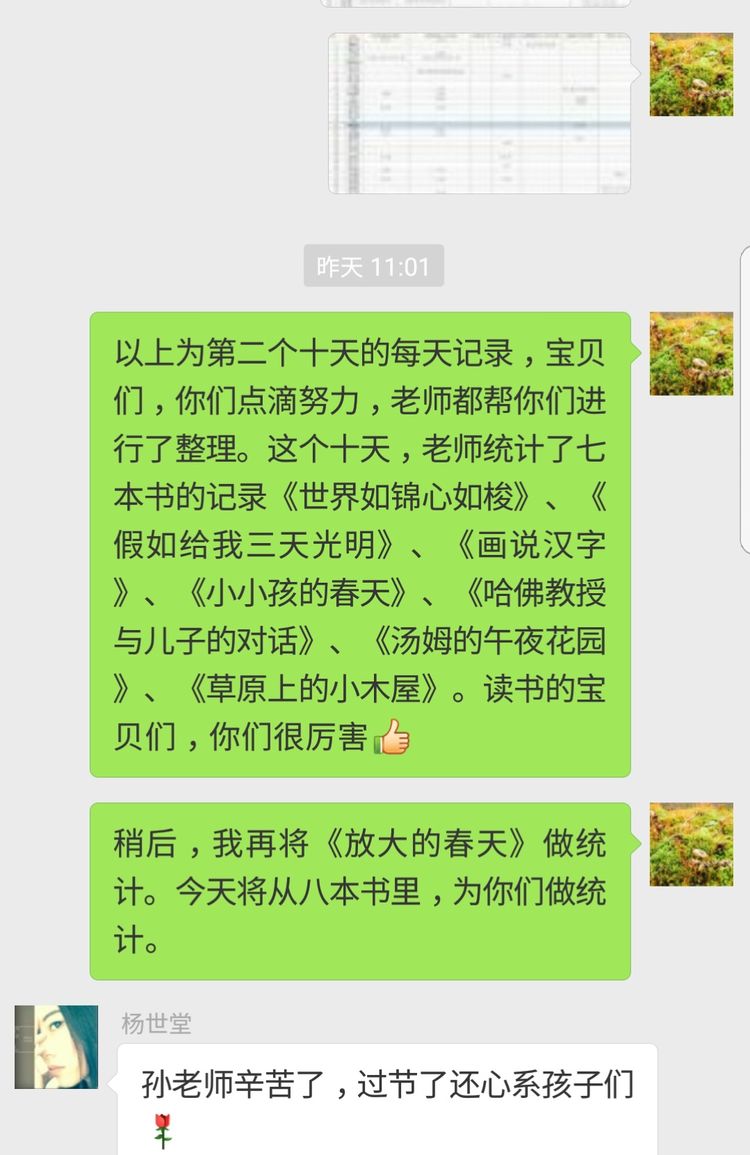 从1月21日开始,朗读开跋。晚上六点,我准时发出朗读接龙的口令。孩子们或许早已守在另一端,不到一分钟,已有七八人报上了自己的姓名。手机陆续跳出孩子的录音。虽然孩子们中有的有些胆怯,声音有些含糊。有的有些生疏,听起来有些磕磕绊绊。但孩子们不舍不弃,用最稚嫩的声音传递了文字中的喜悦、忧伤、悲苦、激情、感动、共鸣……第一晚,我将自己关在卧室里,将每个孩子的录音下载收藏至文件夹中。并打开表格统计孩子的朗读时间。我知道孩子们也渴望听到老师对他们的反馈。我赶在晚上十点,将孩子们的录音进行了回复。