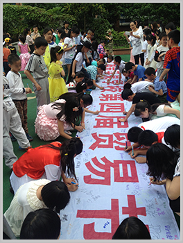 2010年,学校十年校庆,孩子们欢快地表演给来宾们留下了深刻的印象。