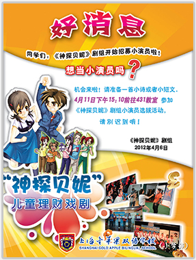 让学生学会有计划的储蓄和消费,儿童理财剧《神探贝妮》在我校招募演员并演出。