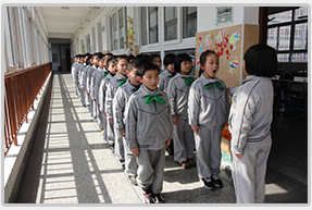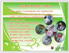 小学部始终把培养学生各种行为习惯放在首要位置,并从日常生活中的吃、穿、住、行等细节方面着手,编辑了《一年级小学生学习生活手册》,从学生进校的第一天起,就开始高度重视学生日常行为规范的落实,关注学生学习与生活的细节。从“小、动、实、活、美”着眼,坚持不懈地实施行为养成教育。让学生真正在“做事中成人,在成人中做事”,健康成长。努力使学生的行为规范外化为行为,内化为素质,逐步养成“文明用语脱口而出,文明行为随处可见”的好习惯,让良好的行为习惯内化为学生的自觉行动。实施了“习惯立人”培养方案,每学期针对不同年级的学生设定培养1—2个生活中的好习惯并内化为自觉的行为。着力培养“品德高尚,学业优秀,身心健康,有艺术修养”的金苹果小学生。