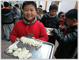 弘扬民族文化,过一个与众不同的元旦。孩子们亲自动手包饺子,过新年。