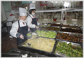 今天我值班,穿上厨师的服装,戴上厨师帽,我为学生们服务,很辛苦,也很有成就感,这就是我们的小厨师体验活动!