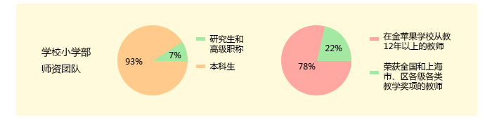 上海金苹果学校小学部秉持“人人进步,人人快乐,人人成才”的办学理念,凭借着求真务实的作风,吃苦耐劳的意志,勇于创新的精神,为人师表的品德,卓越不凡的业绩,已将学校打造成一所教学质量稳定,教育成果显著,学部特色凸显,特色课程突出,广获专家肯定,孩子向往,家长认可的上海著名寄宿制学校。近年来,尽管新生入学人数超过预期触发摇号,但学校不为虚,只为实,不为利,只为精,排除一切干扰,坚持择优录取,确保教学质量,从而赢得了社会广泛赞誉和家长高度信赖。