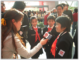 小学生接受媒体采访:晨跑让我身 体强健,艺术熏陶使我情趣高雅。