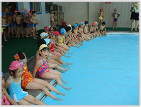 游泳课前的热身活动已经让孩子们开心得露出了笑容。