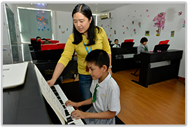 在授课过程中,老师会根据学生的学习进度准备一些孩子们熟悉喜欢并有练习价值的乐曲或儿歌,让学生们进行学习。当孩子能够熟练演奏并自弹自唱时,相信他一定会变得更快乐,更阳光,更充满自信。