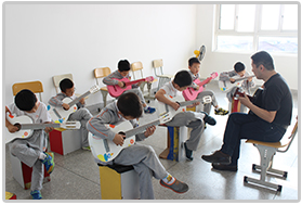 吉他是一门入门比较简单的乐器,它不像其他西洋乐器必须对五线谱和乐理知识有较深的理解,因为它采用世界通用的吉他专用六线谱,识谱简便,是一门能让学生迅速掌握的乐器。