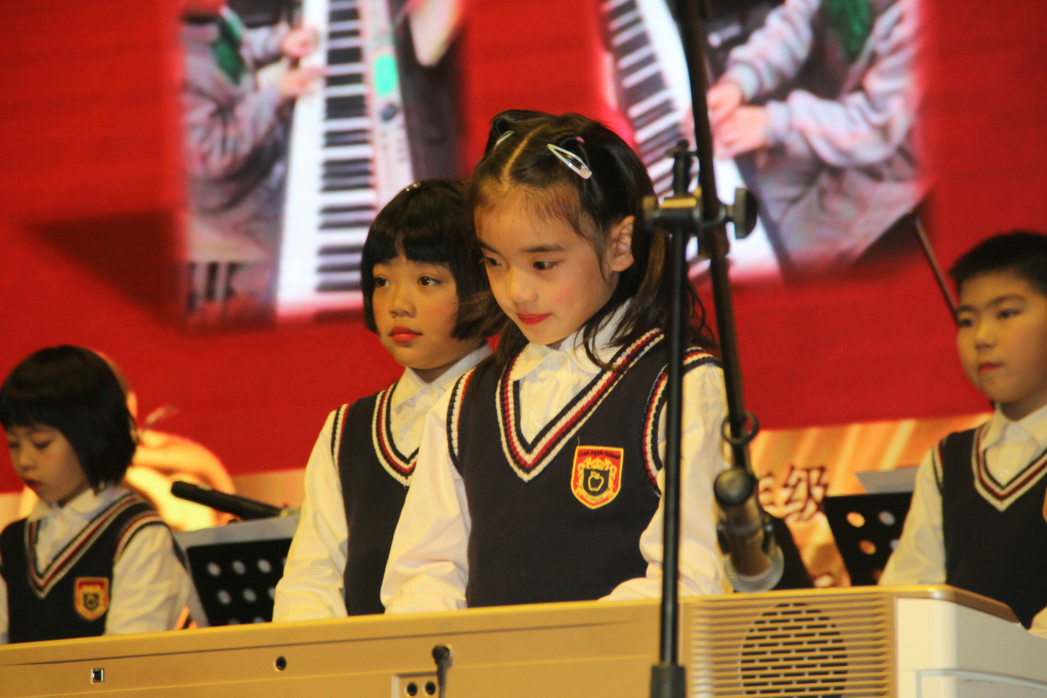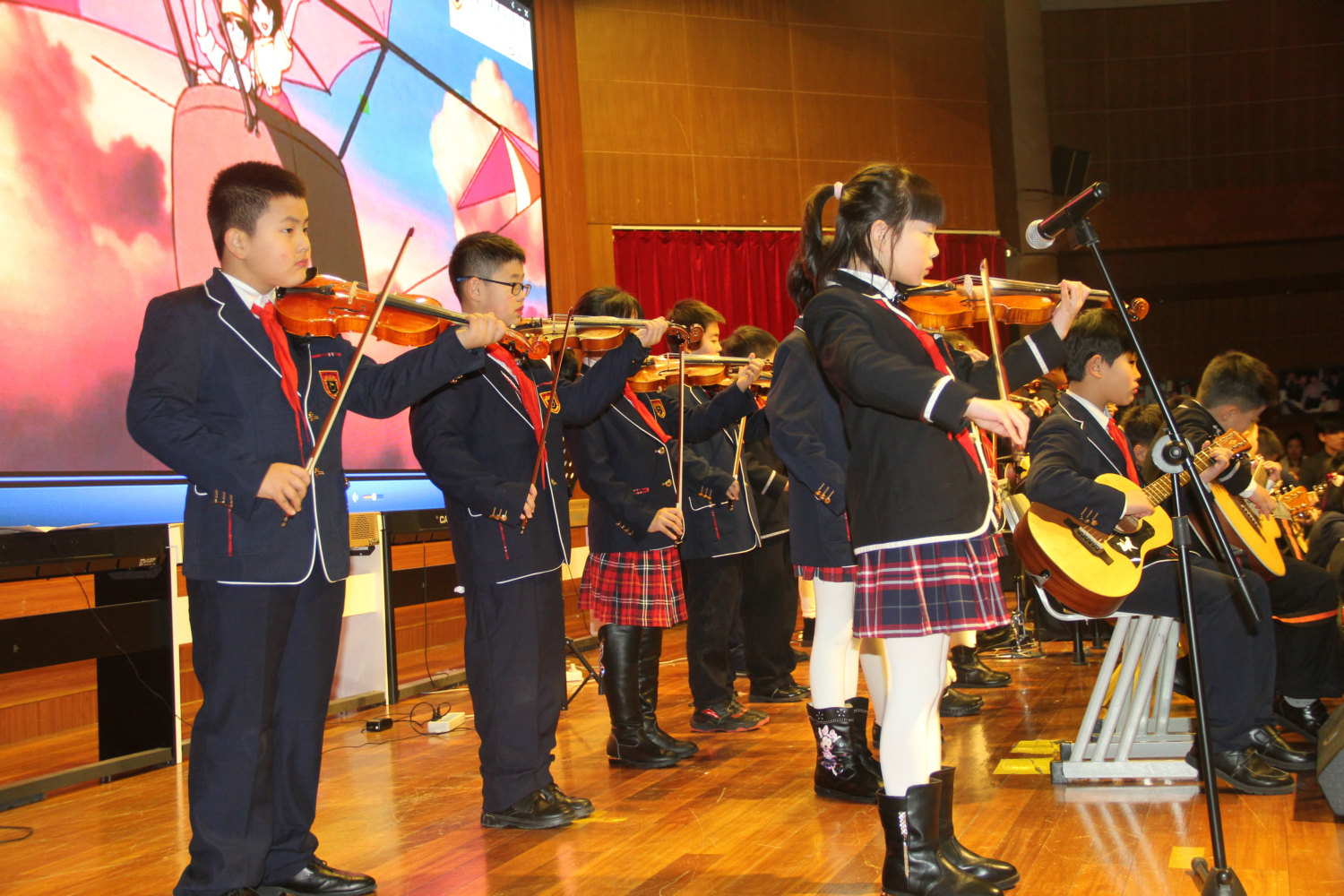 2018新年音乐鉴赏会相比之前,在技术上以动画为背景,动与静的完美结合,为整场音乐会添加了不一样的色彩,此次的表演也获得了老师,家长们的一致好评,也见证了在2017年里小朋友们用自己的勤奋、努力有了今日的成绩,在成长过程中经历过的磨练让自己更强大,也见证了金苹果艺术中心不容小觑的强大实力。