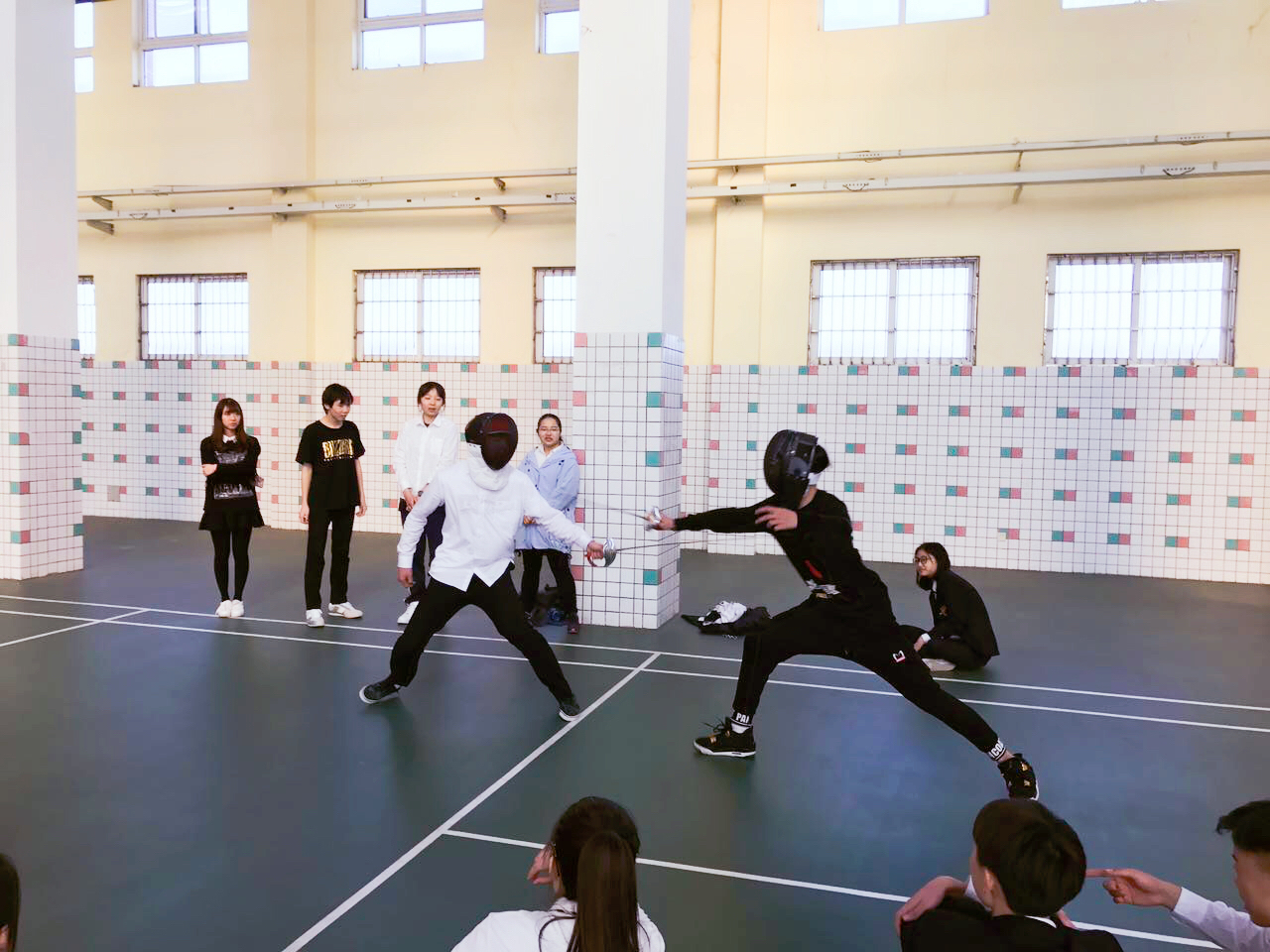 每次上课,教练会先带着学生绕着篮球场慢跑,并做一些小游戏热身,接下来,教练非常细心耐心并且幽默风趣的从步伐到手势一个一个动作分解教授,学生们认真学习,乐在其中,最精彩的部分是学生和教练对击过程,惊心动魄,学生们的一招一式都学得有模有样。
