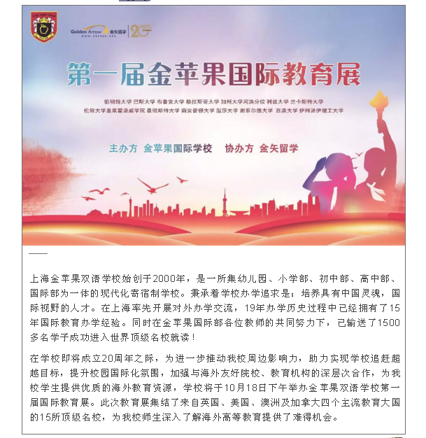 重磅来袭,上海金苹果双语学校国际部第一届国际教育展