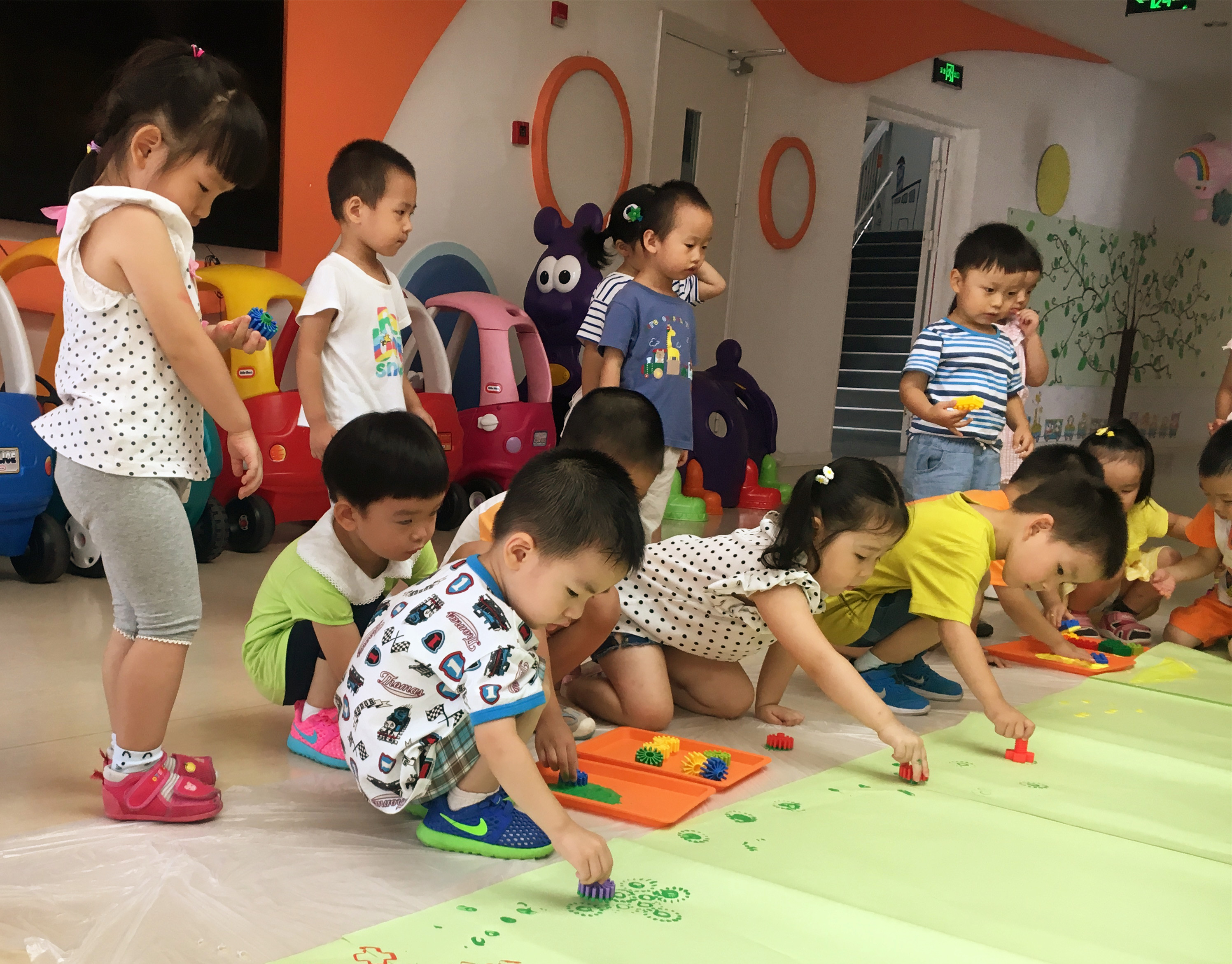 (现场,按不同年龄段由教师引导进入相应区域活动)