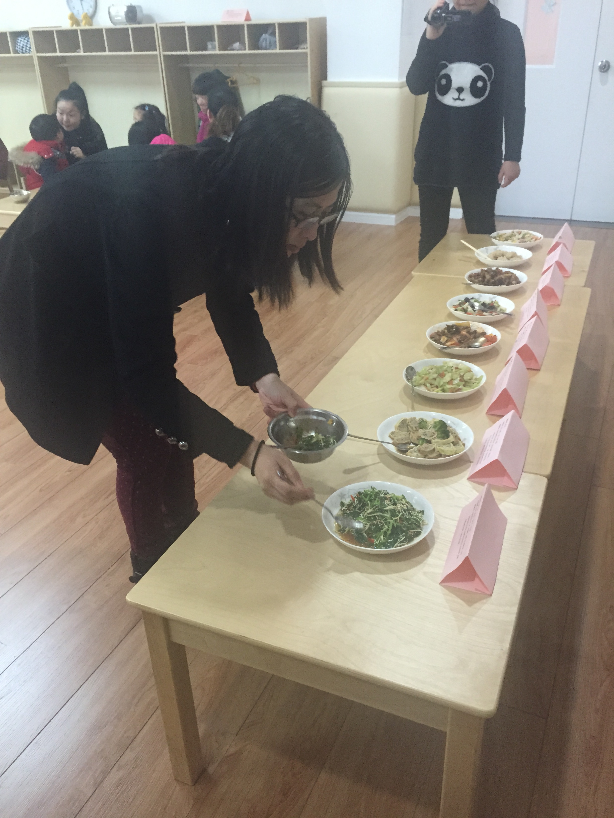 “冬季美食品尝节——菜肴篇”活动于1月29日下午在上海金苹果学校附属幼儿园开始了。此次活动最主要的宗旨是向家长传递幼儿膳食的科学知识,让家长们对金苹果幼儿园内的膳食管理与操作有全面的了解与认识,推进金苹果幼儿园把幼儿膳食管理工作做得更好,同时,为孩子们提高进餐的自我服务能力,逐渐建立良好的膳食习惯做些基础准备。
