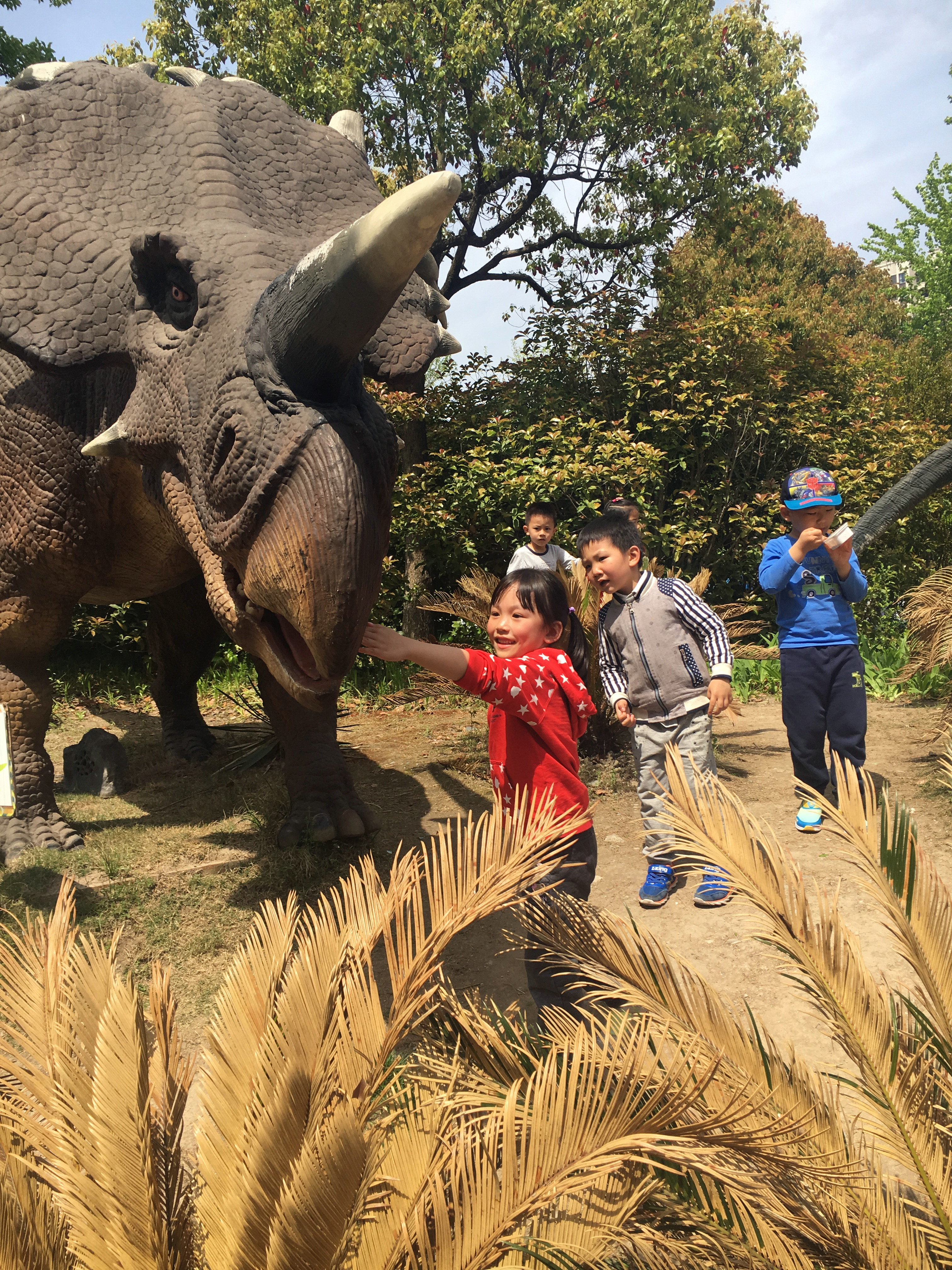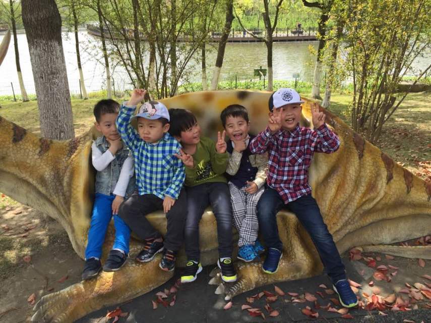 "哇、快看呀,太巨大了吧!"、"这只恐龙的身体怎么长得这么奇怪呀!"、"唉呀……想摸摸看但是好怕会咬人哦……"。腕龙、霸王龙、三角龙、阿马加龙、剑龙、恐爪龙……个个张牙五爪的模样让我们都有些害怕,却又大呼过瘾呢! 离开了恐龙世界,时间走到了午餐点。 各家庭在大草坪上寻找舒适的场地,铺好坐垫、打开塞满食物的背包,一场温馨的亲子野餐盛会马上开始咯!