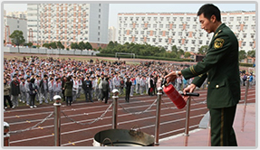 消防演习,为了进一步培养学生掌握消防灭火技能,增强消防意识,提高消防处理能力,更好地使学生了解防火救火及所在部位的消防逃生路径,提高自防自救能力.。