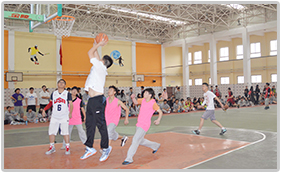 金苹果学校初中学部分重视学生的体育教育,每年举办运动会,还开展各类体育竞技项目。图为中学部举行年级篮球对抗赛