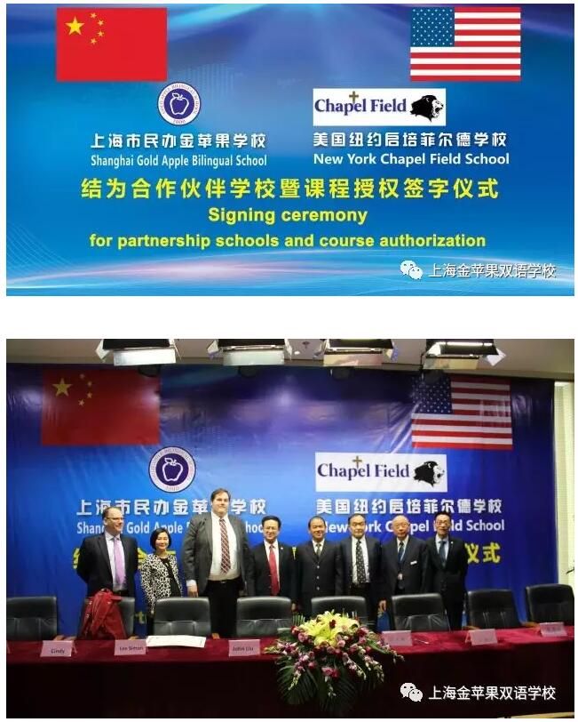 2017年3月23日,上海金苹果双语学校与美国纽约启培菲尔德学校正式签约,成为了战略合作伙伴学校。
