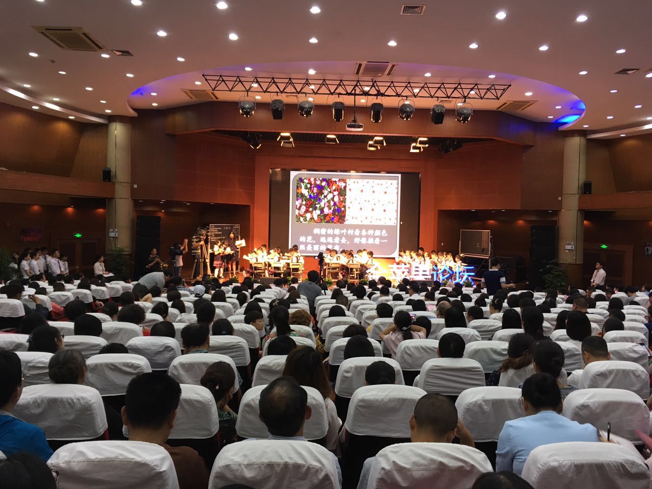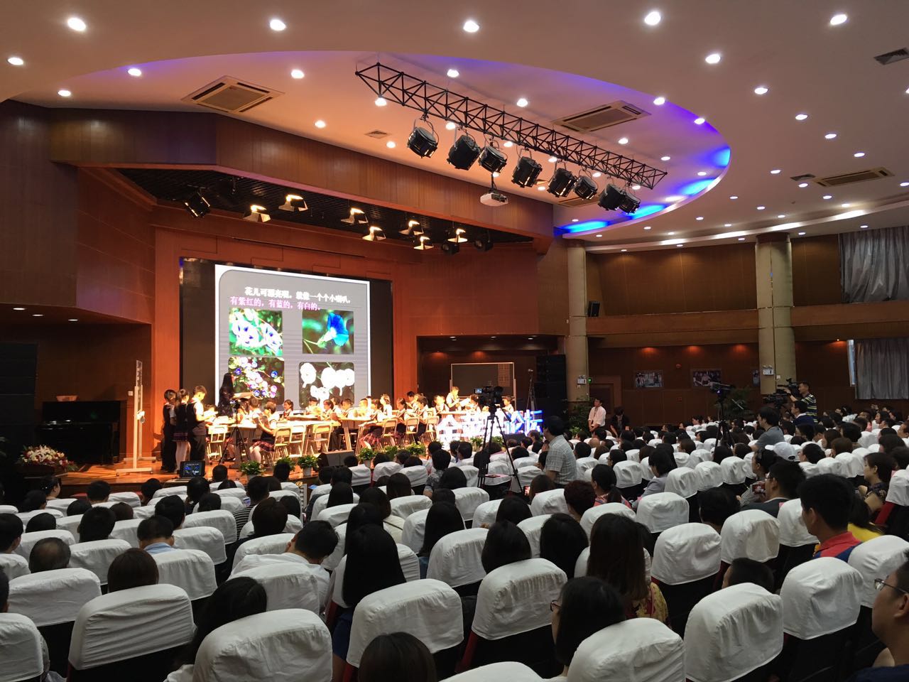 2017年6月10日,高考刚结束,500多名教育界领导、专家、教师及家长就在这个周六走进金苹果,探讨了当今的课堂教学怎么适应未来的社会,共同提升当下教育的教学水平。会议中心座无虚席,大家一起聆听了金苹果学校小学部俞慧琳老师的一节语文课《喇叭花》。这节课让在场教育界专家真实体验了“唤醒课堂”中老师是如何让学生主宰课堂,课堂中老师的从容、学生的专注、合作探究时的自信,舞台上绽放出了一朵朵正在昂首怒放,娇嫩又美丽的花。