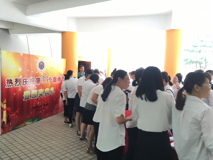 一、颁发高考成果奖。今年的高三又一次刷新了记录。美术学生本科达线率100%,非美术生本科达线率72%,总达线率91.6%,章傲涵同学被同济大学录取,又一次刷新低进高出的记录。二、颁发中考成果奖。今年中考,合格率100%,市区重点率近70%,高中升学率94.4%,全年级中考平均分超区重点最低分数线10.8分,超浦东新区普高分数线56.5分,在新的生源结构下,保持了相对稳定。